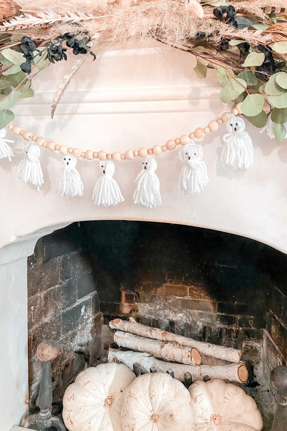 This easy tutorial shows you how to use wooden garland beads and yarn to make a Halloween ghost garland!